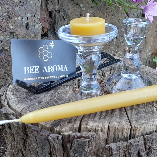 Bundle pack - Glass candle holders with beeswax tapers