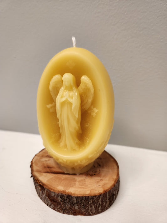 Embossed beeswax Floral pillar with Angel praying