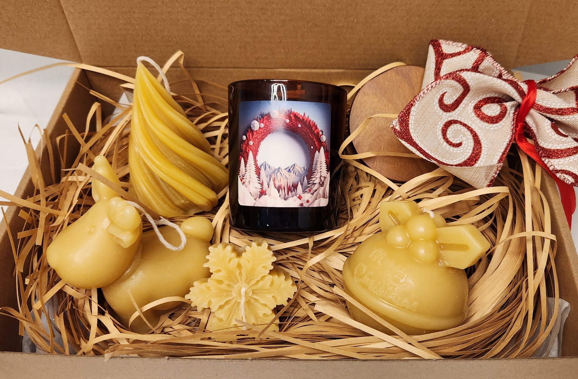 Celebrate the festive season with our Christmas Gift Box featuring charming novelty beeswax candles. Each candle brings a warm, natural glow and a sweet honey scent that fills any room with holiday cheer. Perfect for gifting or adding a whimsical touch to your decorations, these unique candles are sure to brighten up your Christmas celebrations in a playful and cozy way.